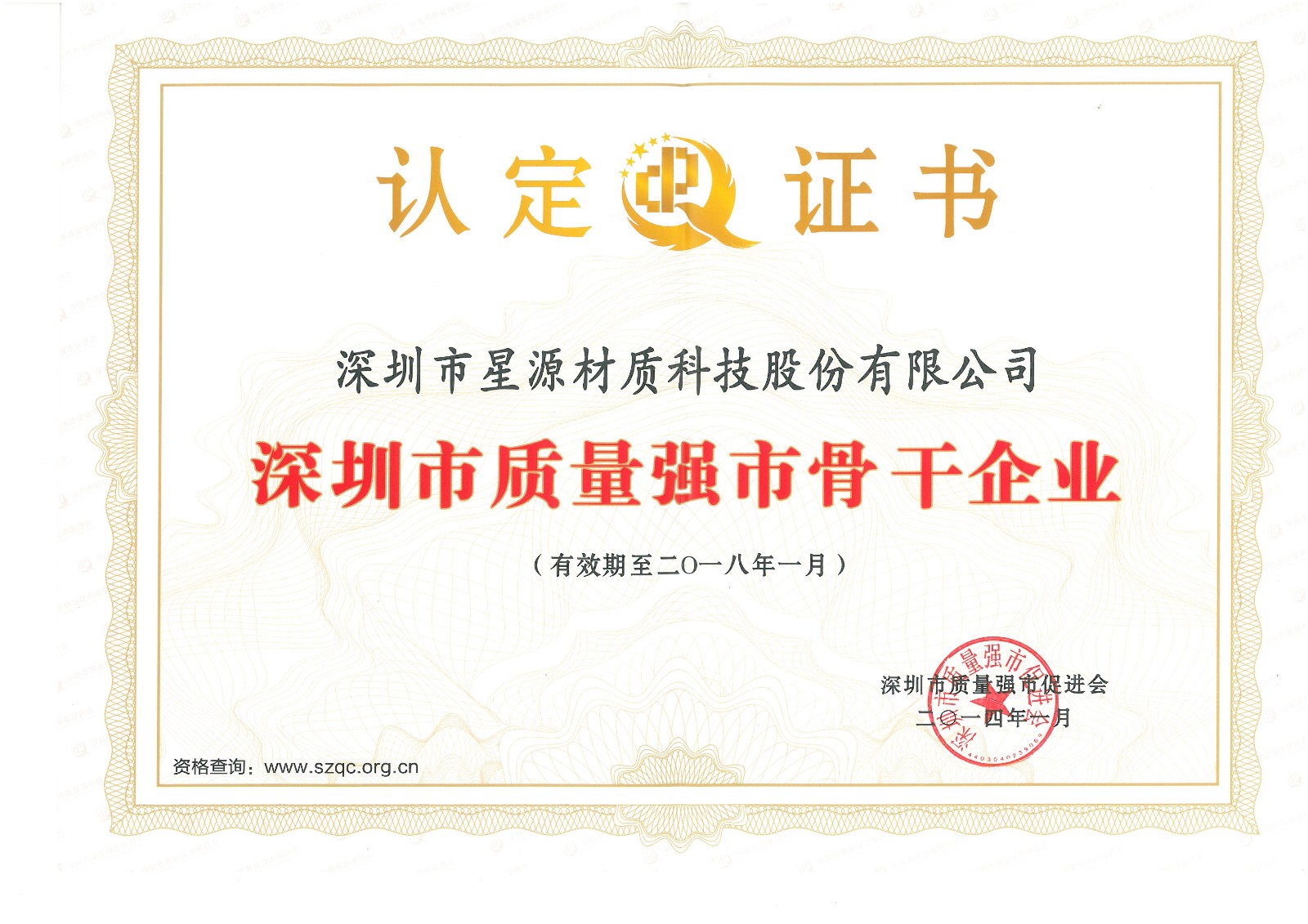 深圳市质量强市主干企业证书 |