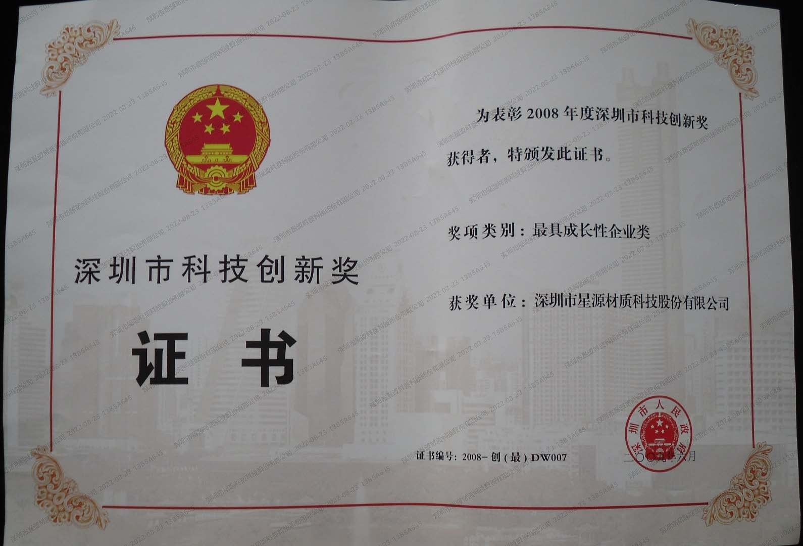 | 2008 | 深圳市科技立异奖 |